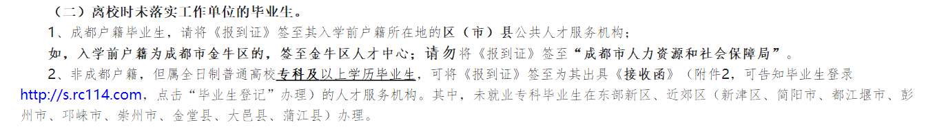 毕业生的就业单位(或其上级主管部门)不接收毕业生档案(一般为民营企业),或出国出境深造的,或毕业时未就业。毕业生持报到证回生源地人才中心(或人才市场)报到。