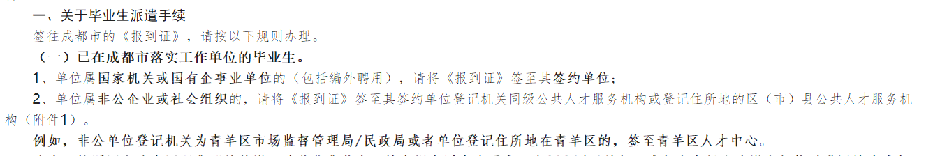 毕业生的就业单位(或其上级主管部门)要接收毕业生档案(一般为事业单位、国有企业),报到证上报到单位名称填就业单位名称,报到地址填单位所在地(到县、区),毕业生直接持报到证到单位报到、上班。
