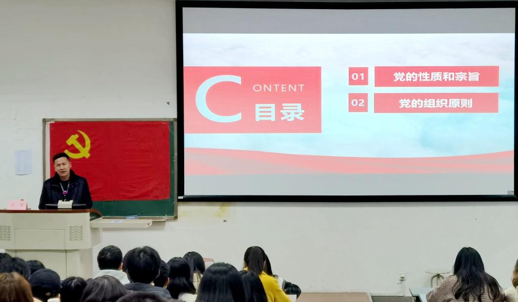 3月25日晚,学院副院长吴平在四教A205教室,为120余名入党积极分子带来专题党课:中国共产党的性质、宗旨和组织原则。