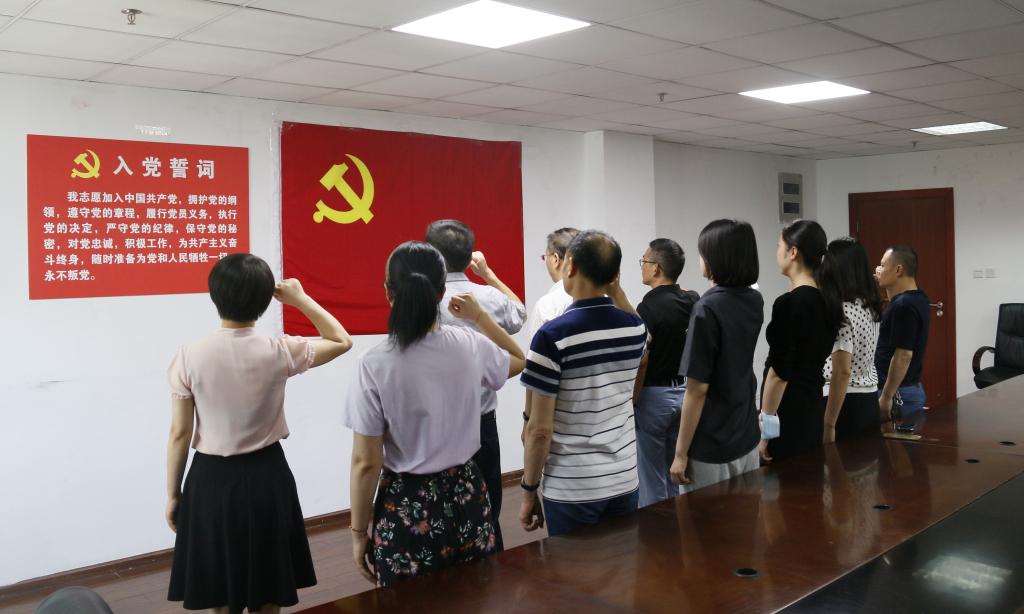 会议最后,在鲜红的党旗下,大家庄严举起右手,握拳宣誓,重温入党誓词。支部全体党员再次接受心灵的洗礼,铭记庄严的承诺,牢记共产党员的使命担当,坚定为党的事业奋斗终身的决心。