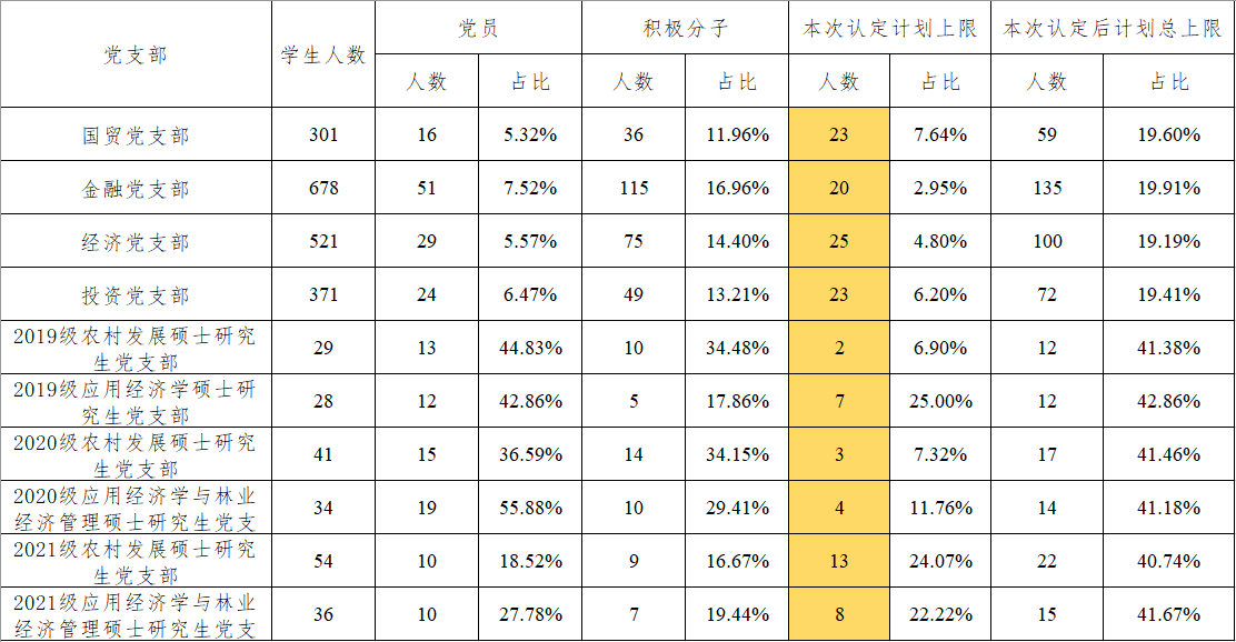 学院党委办公室根据各党支部现有学生人数、党员人数、入党积极分子人数,确定本次入党积极分子认定计划: