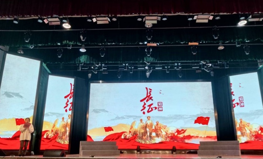 再现长征历程,回顾初心使命。校第八期青马学员、beat365官方网站团委学生兼职副书记唐晓臻以“十月里来秋风凉,中央红军远征忙”、“雄关漫道真如铁,而今迈步从头越”、“官兵一致同甘苦,革命理想高于天”三句诗为脉络,回顾了那段长征路上的峥嵘岁月。丰富翔实的历史图片、声情并茂的故事叙述,带领全体团员重温红军四渡赤水、强渡大渡河、飞夺泸定桥、爬雪山、过草地的两万五千里征程,激励他们点燃精神火炬、赓续红色血脉,传递历久弥新的长征精神。