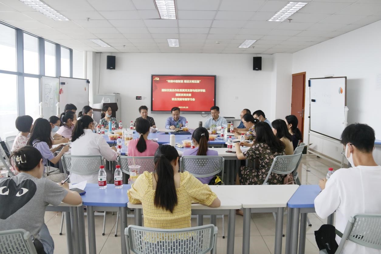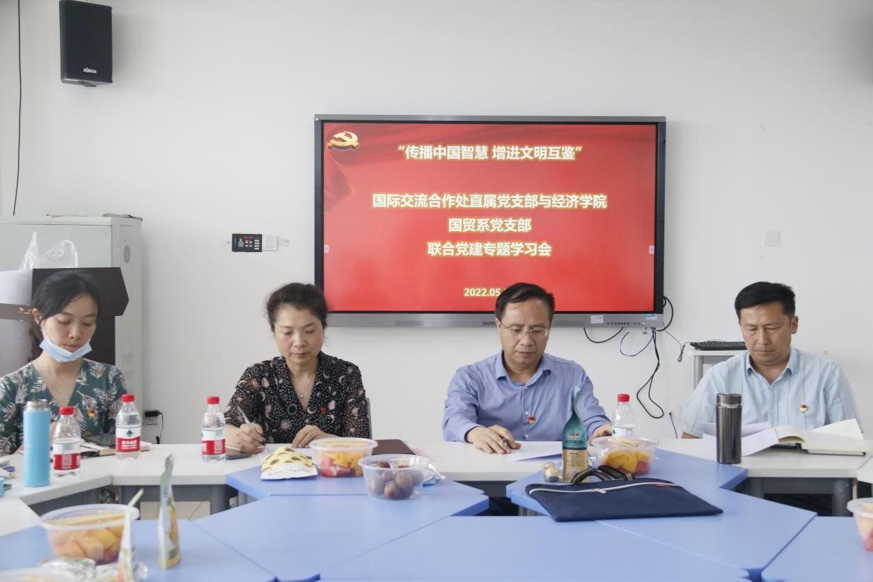 5月10日下午,365官网国际经济与贸易党支部和国际交流合作处直属党支部在成都校区7教1605教室开展主题为“传播中国智慧·增进文明互鉴”的联合专题学习研讨会,两支部的25名中共党员参会。会议由365官网党委委员、副院长吴平主持。