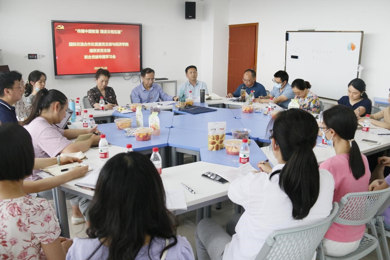 在自由发言环节,国际交流合作处副处长李悦结合自己在国际学生管理和给beat365官方网站国际学生授课的一线教学经验,对国际学生课程思政建设提出建议;国贸系主任沈倩岭希望和国合处一道努力,在建立国际学生实践教学基地和国际学生校友工作方面取得更大的进展。与会的其他党员也分别就如何加强院处合作,继续保持高质量办学方面提出了一系列建设性意见。